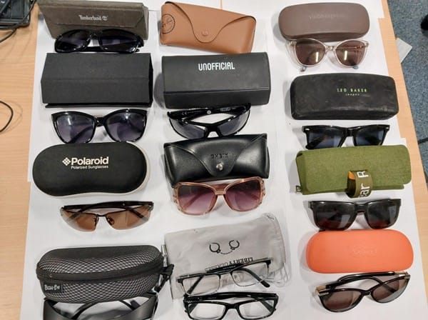 Among the collection of sunglasses recovered are Polaroid and Ted Baker brands. Polaroid sunglasses offer high-quality polarised lenses and typically retail for £30 to £70. Ted Baker sunglasses, known for their designer aesthetic, are priced between £70 and £120. These brands point to items that may have been taken during a residential burglary or vehicle break-in.